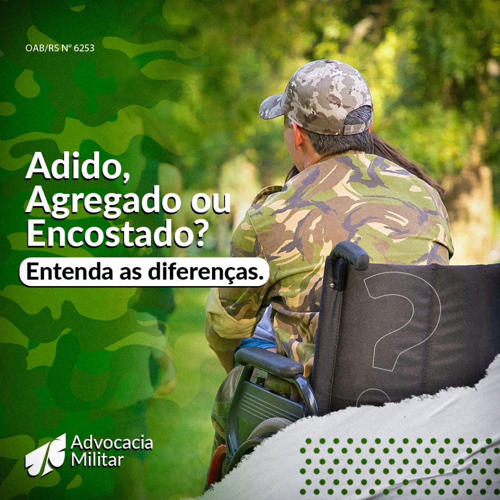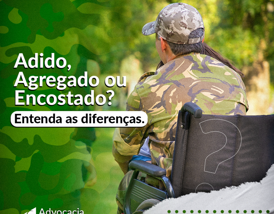 ADIDO É uma condição do militar da ativa, que continua recebendo remuneração, bem como permanece com registro de alterações, ficando somente afastado do expediente. Tal condição pode se dar em virtude de incapacidade temporária para as atividades militares, enquanto espera solução de desligamento do serviço militar ativo, ou transferência para reserva, entre outras. AGREGADO Agregado é o militar da ativa que deixa de ocupar vaga na escala hierárquica de seu Corpo, Quadro, Arma ou Serviço, nela permanecendo sem número. Será agregado o militar que for afastado temporariamente: se tiver sido julgado incapaz temporariamente, após 1 ano contínuo de tratamento; haver ultrapassado 1 ano contínuo em licença para tratamento de saúde própria; ultrapassar 6 meses contínuos em licença para tratar de saúde de parente; ter sido julgado incapaz definitivamente, enquanto tramita o processo de reforma. ENCOSTADO É um instituto jurídico criado com o intuito de garantir, sobretudo aos desincorporados, o direito à assistência médico-hospitalar de que necessitem para restabelecerem a sua plena capacidade laborativa comprometida durante a prestação do Serviço Militar. O militar “encostado” não recebe remuneração, não é considerado militar da ativa e, portanto, não se submete à hierarquia e disciplina das Forças Armadas, estando vinculado somente para fins de […]
