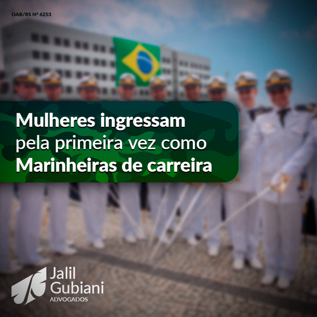 Pela primeira vez na história, mulheres ingressam na Escola de Aprendizes para se tornarem marinheiras de carreira. Foram 48 as jovens que saíram do ensino médio e, por meio de concurso, celebraram a aprovação na Escola de Aprendizes-Marinheiros de Santa Catarina (EAMSC). As jovens farão parte da primeira turma feminina do Corpo de Praças da Armada da Marinha do Brasil. Elas ingressaram na instituição no dia 16/01/2023, juntamente com 97 homens, totalizando 145 novos alunos. Até 2022, as mulheres entravam no corpo de Praças como Cabo, marinheiras apenas da condição de temporária. O Comandante Luiz Vilela não esconde o orgulho em estar à frente da escola em um momento tão marcante. “É uma grande satisfação profissional e pessoal para mim, como Comandante da EAMSC, fazer parte deste processo que ficará registrado na história da Marinha do Brasil”, finalizou. A marinha ganha ainda mais notoriedade em sua tropa com as mulheres! Acesse a matéria completa! https://www.marinha.mil.br/agenciadenoticias/ Jalil Gubiani Advogado Militar | advogadomilitar.adv.br