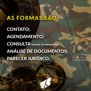 Diante disso, entendemos ser fundamental a análise detalhada do caso, através de uma consulta técnica para ouvir o militar e, após, conjugada com a análise completa dos documentos relacionados ao caso, emitirmos um parecer jurídico que aponte todas as possibilidades jurídicos viáveis, bem como a base legal e/ou jurisprudencial em relação ao caso.
